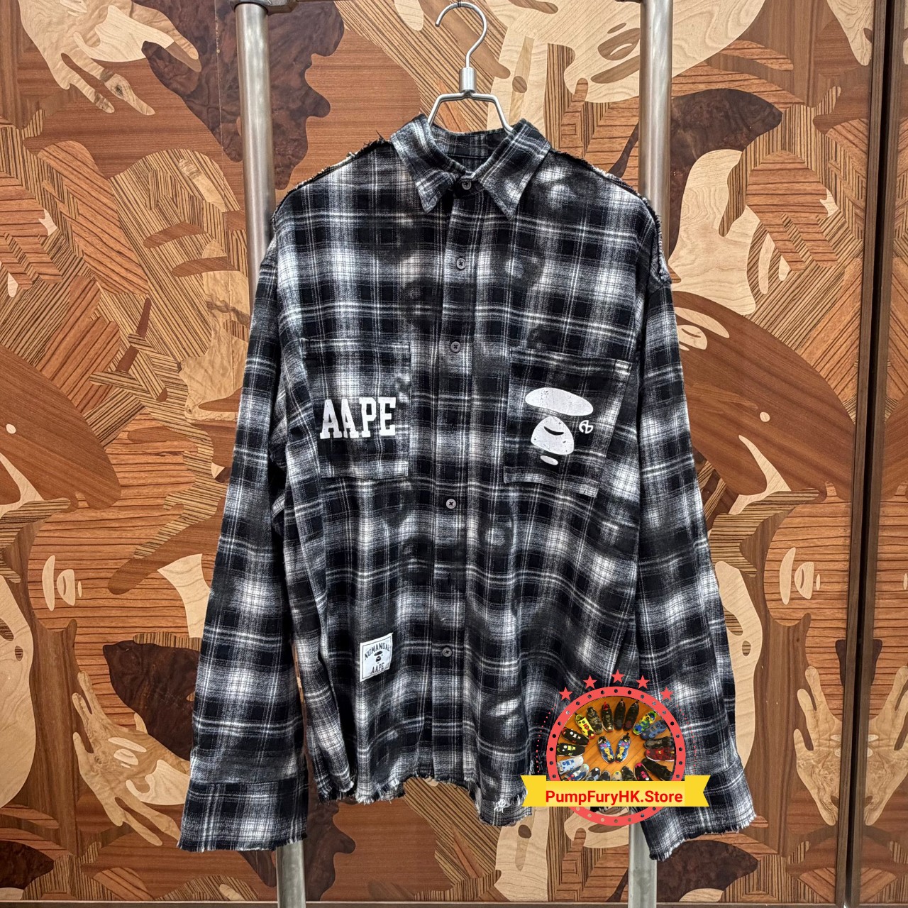 AAPE X NOMANUAL Moonface check long sleeve shirt (9776)
